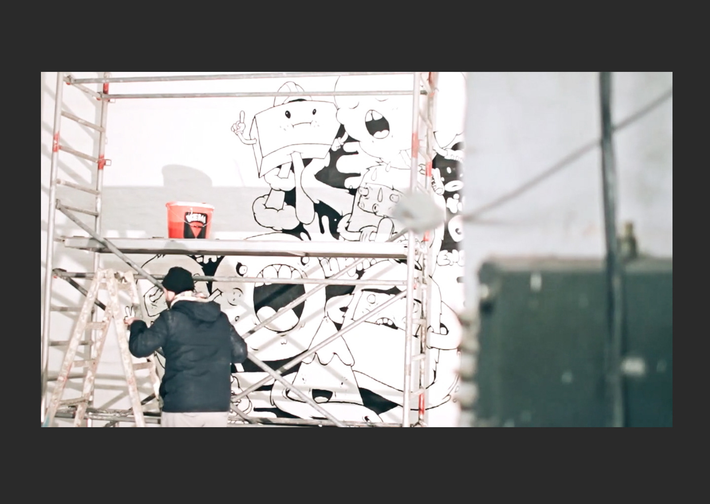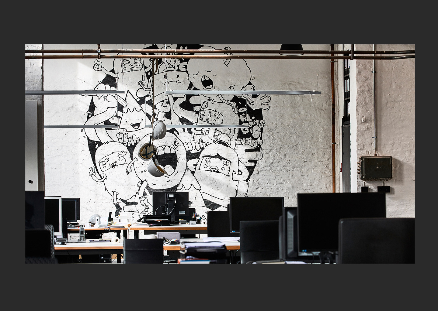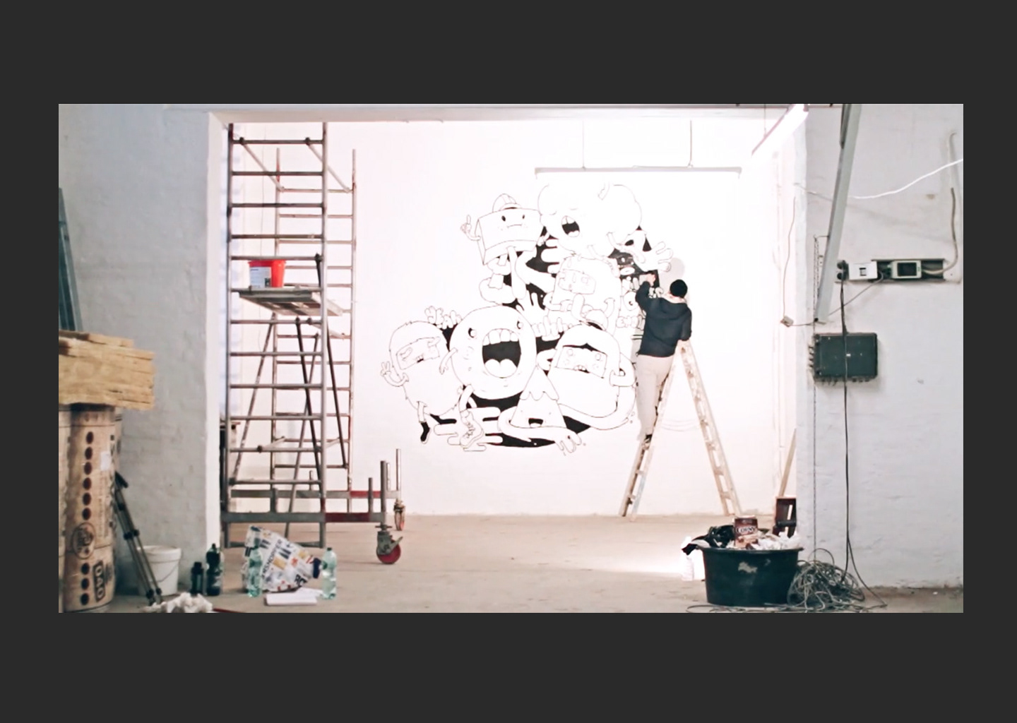 Liveaction painting i did for KKW- Architekten from Luedenscheid. This superfresh architecture office asked me to doodle their wall with some funky character shit. I painted 3 days on it plus some corrections on the 4th day.
